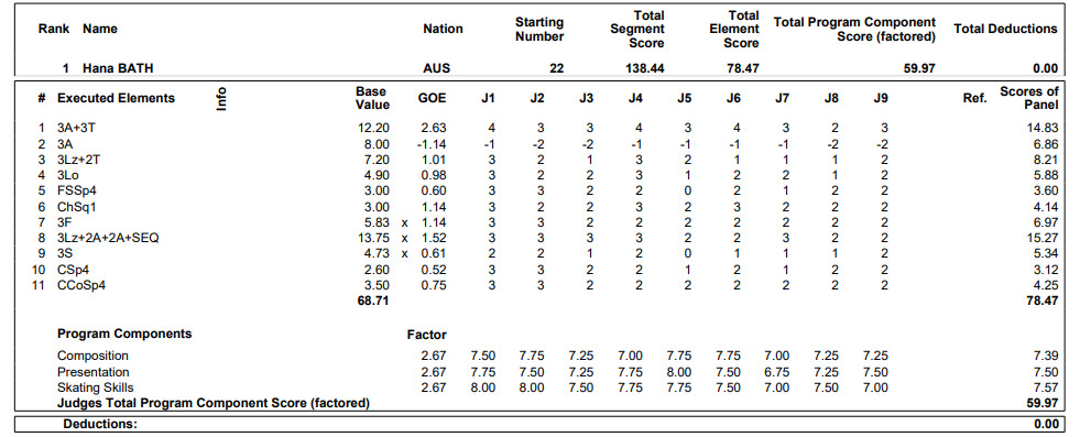 「今日は最高の滑りができました。世界ジュニア選手権を、心から楽しみたいと思っていましたし、昨年もそれができたので、今年もお客さまの前で演技し、皆に自分の実力を見せたいと思っていました。今日の自分の滑りにとても満足しています」