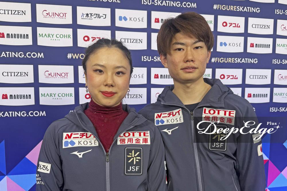 【プラハ共同】フィギュアスケートの世界選手権に出場する日本勢が開幕前日の24日、プラハで公式練習が行われ、アイスダンスの吉田唄菜(よしだ・うたな)、森田真沙也(もりた・まさや)組が調整後、取材に応じた。