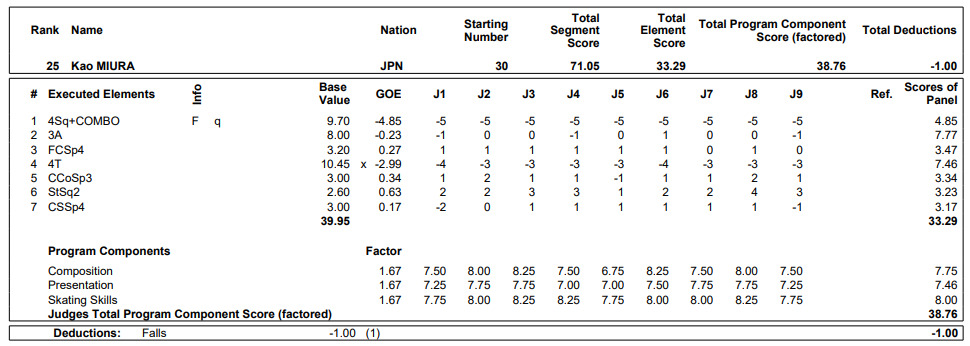 「練習でパンクとかはあるっちゃあるんですけど。(4回転)サルコーもちょっと回転も微妙なぐらいでこけたし、(トリプル)アクセルもそうだし、(4回転)トー(ループ)も、(着氷で)ステップアウト、ああいうステップアウトってしないんで練習で。降りるかパンクか、みたいな失敗の仕方なんだけど、なんでこうなっているのか自分でもう、分からない、というのが正直な感想というか」
