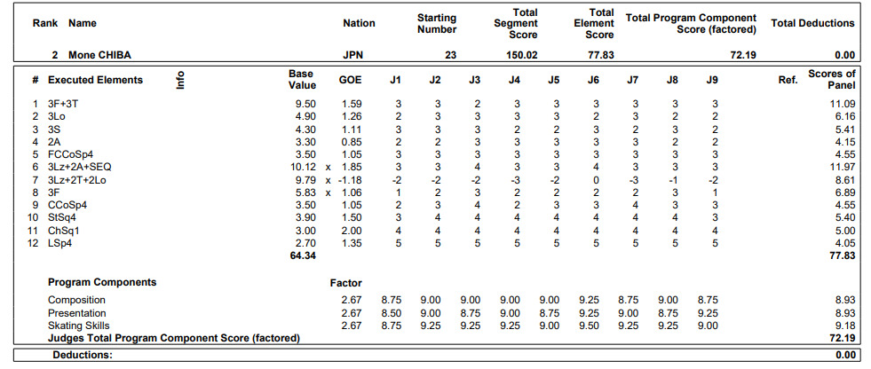 「今日はすごく緊張したんですけども…。ショートよりもさらに緊張して臨んだ試合だったんですけど。オリンピックでの悔しい気持ちから1カ月間、本当に自分を信じ続けて、頑張り続けたかいがあったなぁ、と思えるような演技ができたので、シーズンの締めくくりを笑顔で終われて、すごく良かったなと思います」