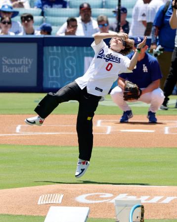 【ロサンゼルス共同】フィギュアスケート男子で世界選手権2連覇中のイリア・マリニン(米国)が6日、ドジャースの大谷翔平が先発したロサンゼルスでのカージナルス戦で始球式を務めた。マウンド前で「スピン」した後、ノーバウンドで捕手役に投げ込み、スタンドからの歓声に笑顔で手を振って応えた。