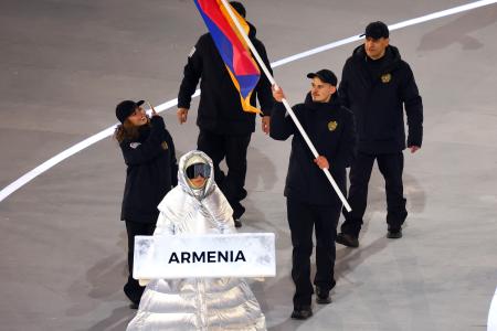 アルメニア代表はニキータ・ラフマニンとカリナ・アコポワ。国際スケート連盟によると、2人はロシア出身で五輪以前に国籍をアルメニアに変更した。2人は6日にミラノで行われた開会式でアルメニア選手団の旗手を務めた。