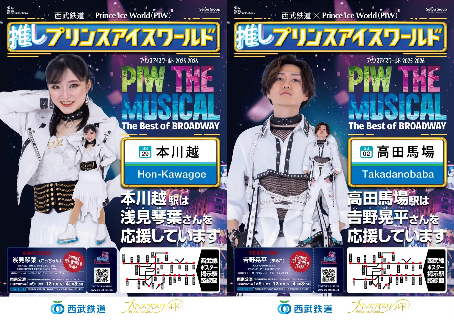 西武メディア・コミュニケーションズ(本社:東京都豊島区)は31日、2026年1月9日(金)~12日(月・祝)に行われるアイスショー「プリンスアイスワールド2025-2026 PIW THE MUSICAL~The Best of BROADWAY~東京公演」(以下、PIW)にあわせ、西武鉄道株式会社沿線でさまざまなフィギュアスケート啓発イベントを実施すると発表した。西武線26駅で「駅の推しプリンスアイスワールド」プロジェクトを開催するほか、本公演の会場であるダイドードリンコアイスアリーナにて、小中学生を対象としたスケート教室や町田樹さんによる『大人スケーターのための氷上ワークショップ』などを行う。