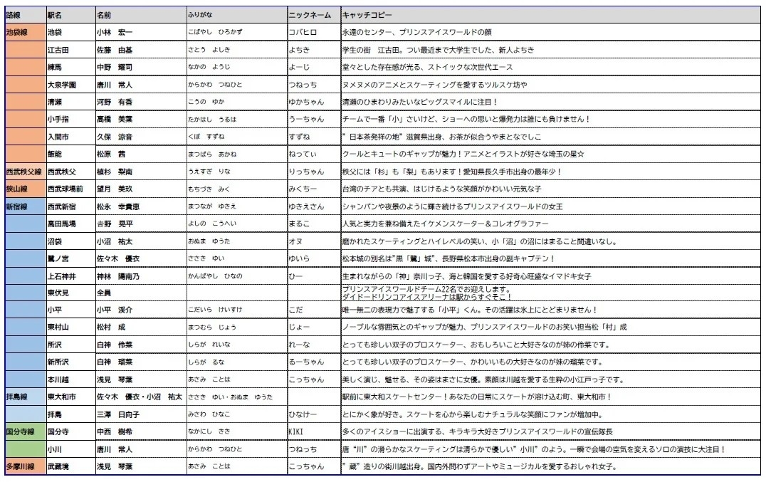 2025年度PIWチームメンバー22名を名前や駅のイメージなどから「駅の推しプリンスアイスワールド」に各駅1人選定し、等身大パネルなどの掲出を行う。本企画は西武線26駅で実施。会場の最寄り駅である東伏見駅はチーム全員が、西武グループのスケートリンク(東大和スケートセンター)がある東大和市駅は2人が対象となる。各駅とPIWメンバーのユニークなキャッチコピーにも注目だ。