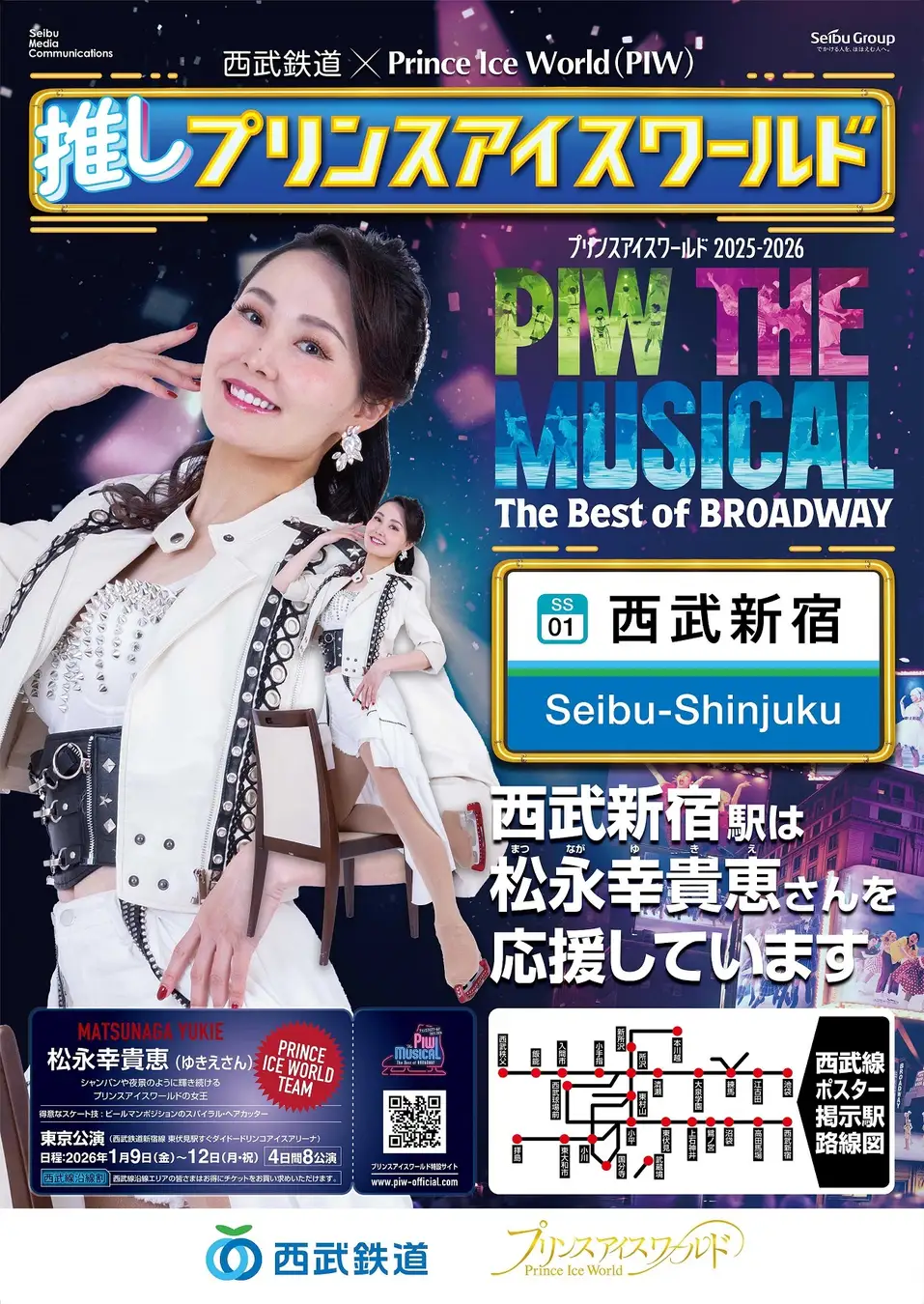 プリンスアイスワールドのキャスト達が各駅担当させていただきます『推しPIW』。今回で3回目となります。松永幸貴恵は西武新宿駅の担当をさせていただきます。それぞれの個性に合わせた駅をキャスト達が担当させていただきますので、西武鉄道で各駅を廻りながらキャスト達の新たな魅力を発見してください。昨年のアイスショーを継承したプリンスアイスワールド東京公演。会場でお待ちしております。