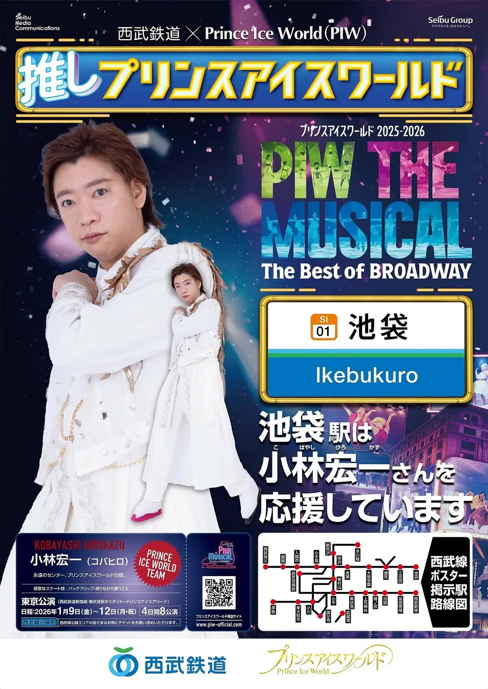 今年で3年目!池袋駅の「推しPIW」になることができました。プリンスアイスワールド男性ラインキャプテンの小林宏一です。3年間「推しPIW」の池袋駅の担当に選ばれるなんて夢のようです!心より感謝しております!3年目となったブロードウェイシリーズ!1年目と2年目をミックスした、今までで1番すごいショーとなっています!観に来た人はPIWの虜になること間違いなし!是非観に来てください。