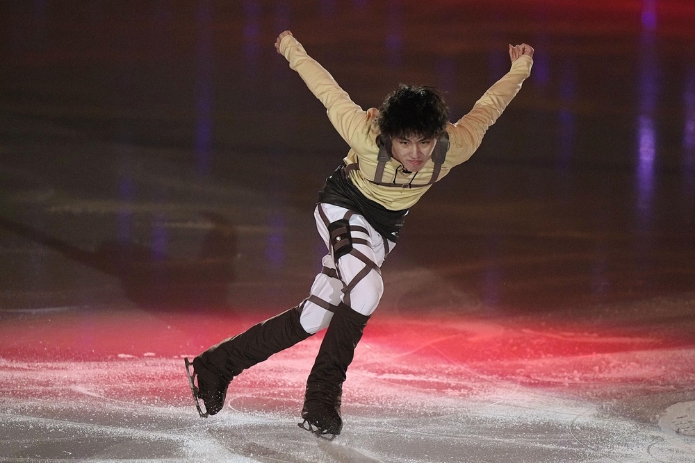 三原と島田はショートプログラム(SP)を披露。三原は「GPファイナルの2連覇と世界選手権の表彰台を目標に、一つ一つ大切に全力で頑張りたい」と抱負を語った。男子で2月の四大陸選手権を制した三浦佳生(オリエンタルバイオ・目黒日大高)は人気アニメ「進撃の巨人」の曲を用いたフリーを滑った。3月の世界選手権3位で18歳のイリア・マリニン(米国)ら海外勢も登場した。