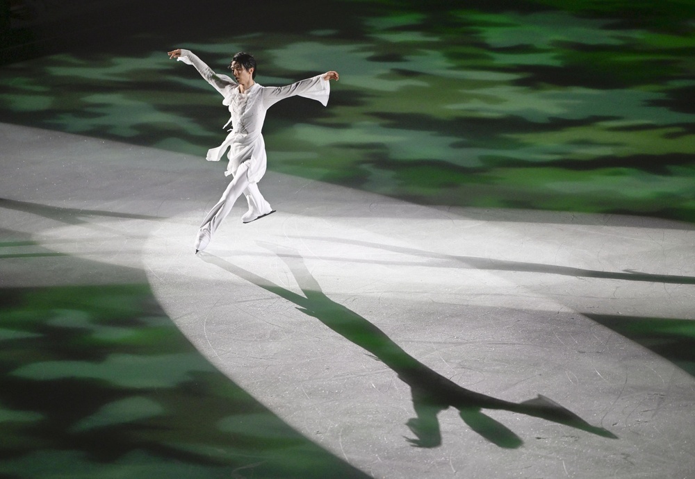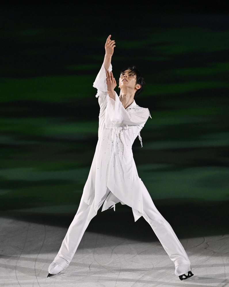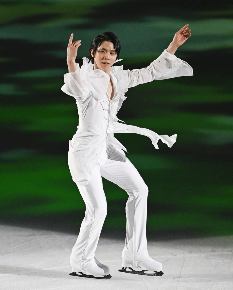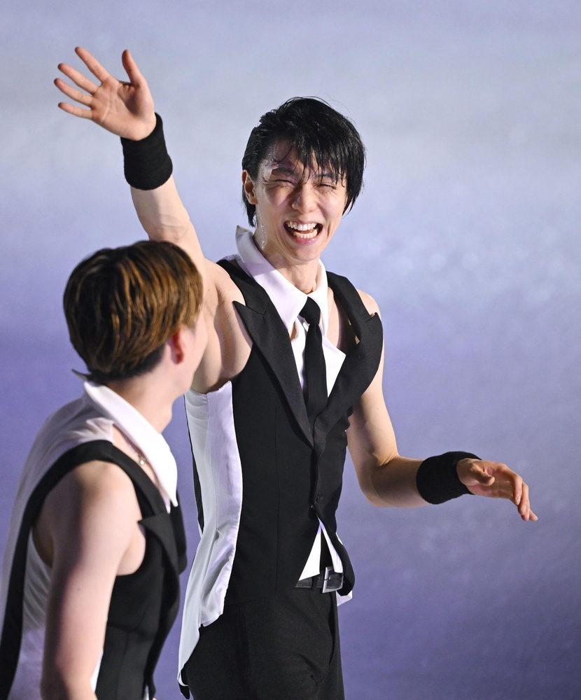 羽生さんは大トリで歌手の西川貴教さんと共演し、フィナーレで4回転トーループを鮮やかに成功させて5千人超の観客を沸かせた。山本草太や青木祐奈(MFアカデミー)はミュージカルでも活躍する俳優の城田優さんの歌に合わせて滑り、青木はディズニー映画「アラジン」の音楽で王女ジャスミンを演じた。