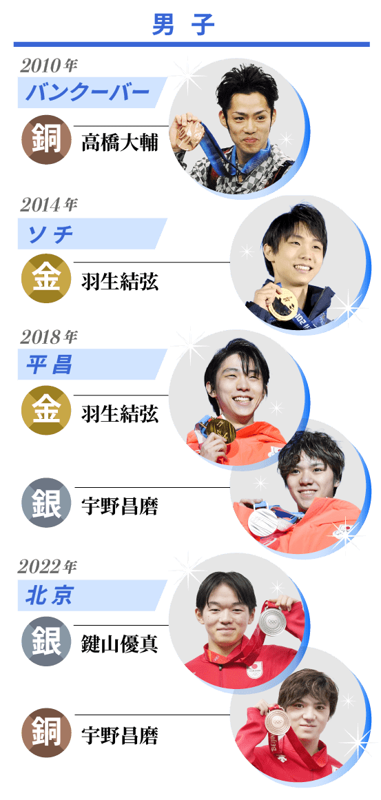 2022年 北京冬季オリンピック 鍵山優真=銀メダル 宇野昌磨=銅メダル