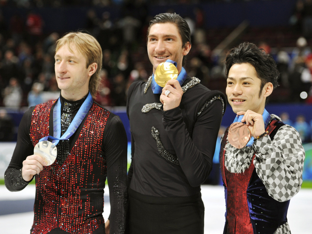 エバン・ライサチェク(米国)がショートプログラム(SP)2位からの逆転で金メダル。独立国家共同体(CIS)時代を含むロシアの6連覇を阻み、2006年トリノ大会王者エフゲニー・プルシェンコ(ロシア)が2位となった。