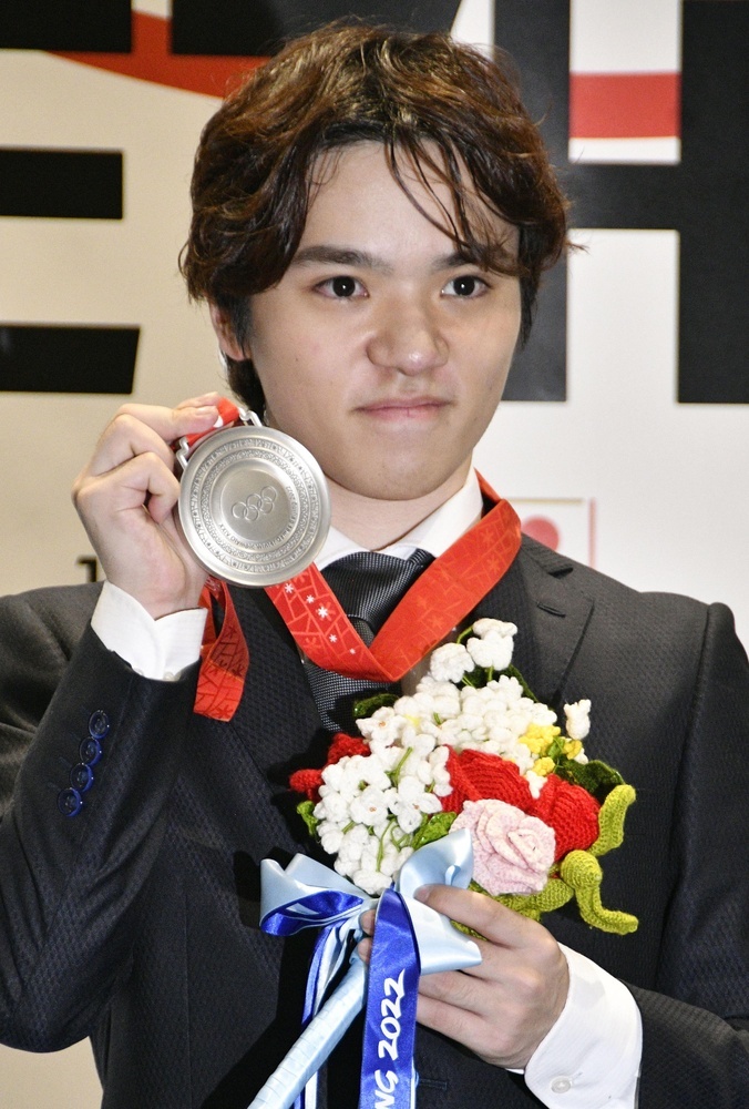 2022年北京冬季オリンピック団体で2位に繰り上がった日本代表の宇野昌磨さんが10日、東京都内で日本オリンピック委員会(JOC)からメダルを受け取り「オリンピックという貴重な舞台での結果を大切にしてくださり、すごくうれしい。みんなが一丸となって得た銀メダルだと思う」と喜びを語った。