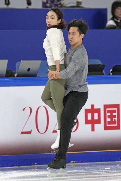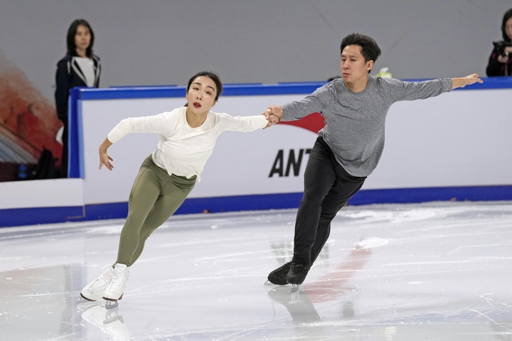 ペアで金メダルに輝いた2022年北京冬季五輪後に解散した隋文静(ずい・ぶんせい)、韓聡(かん・そう)組(中国)は復帰戦に向けて調整した。