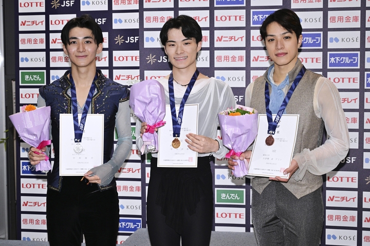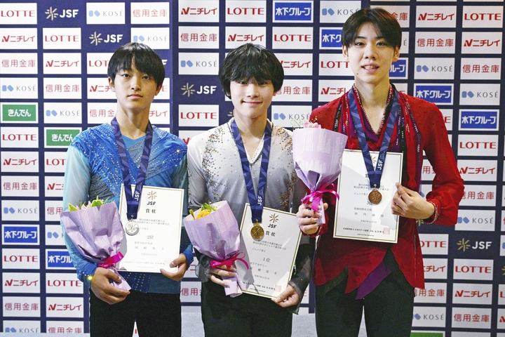 フィギュアスケートの西日本選手権最終日は3日、大津市の木下カンセーアイスアリーナで行われ、男子はショートプログラム(SP)3位の杉山匠海(すぎやま・たくみ)(岡山大)がフリー1位の合計203・67点で逆転優勝した。中村俊介(なかむら・しゅんすけ)(木下アカデミー)が2位、片伊勢武(かたいせ・たける)アミン(関大)が3位だった。