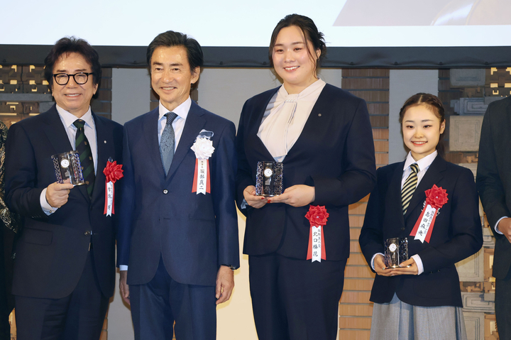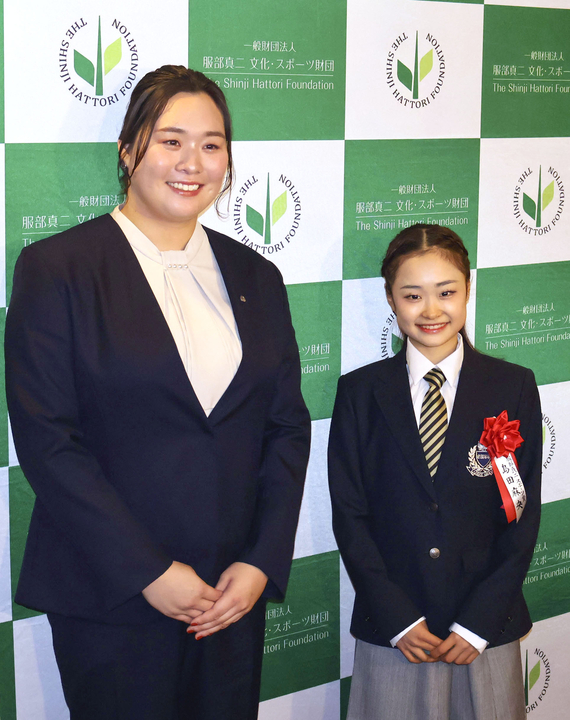 フィギュアスケート女子で17歳の島田麻央(木下グループ)が13日、スポーツと音楽の発展に取り組む人材を表彰する服部真二賞の授賞式に東京都内で出席し、陸上女子やり投げの北口榛花(JAL)も登壇した式典で「このような素晴らしい皆さまと受賞できたことを励みに、これからも努力していきたい」とあいさつした。