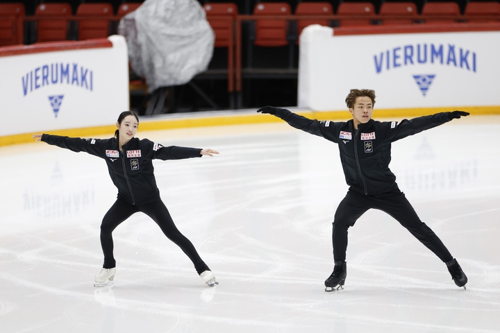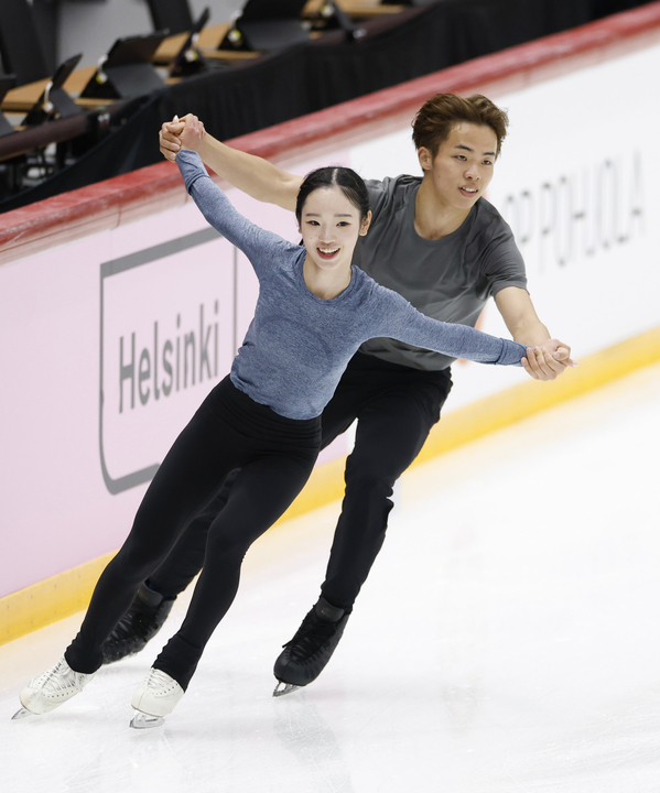 ペアで第4戦4位の長岡柚奈(ながおか・ゆな)、森口澄士(もりぐち・すみただ)組(木下アカデミー)はフリーの音楽を流して動きを確かめた。男女とペアのショートプログラム(SP)は21日、フリーは22日に実施する。