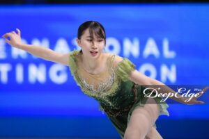 いずれも初出場の岡田芽依(おかだ・めい)(名東FSC)は合計195・82点で3位、金沢純禾(かなざわ・すみか)は5位、岡万佑子(おか・まゆこ)(ともに木下アカデミー)は6位。