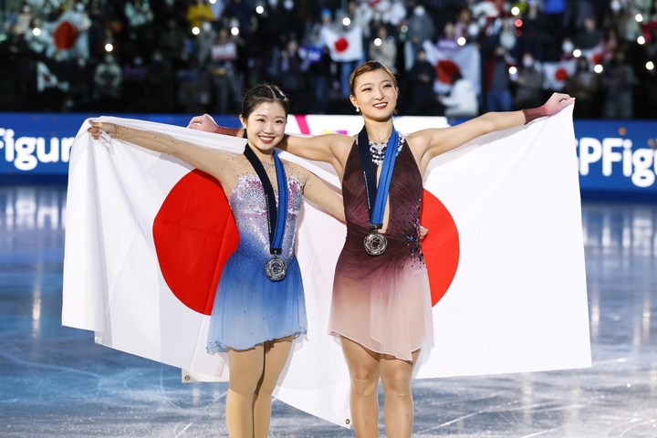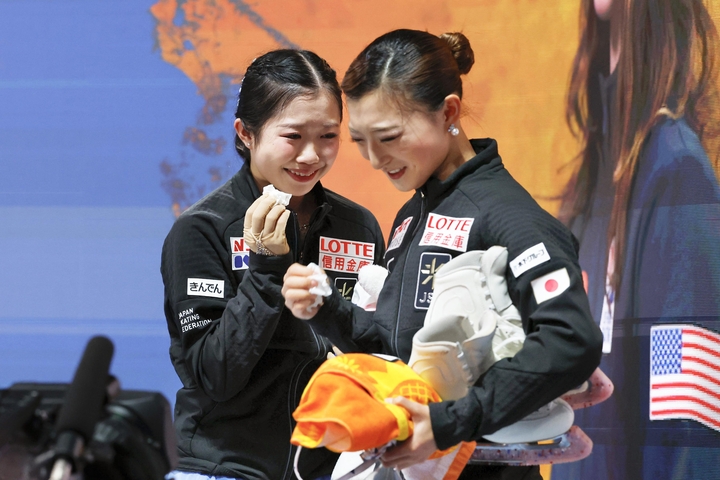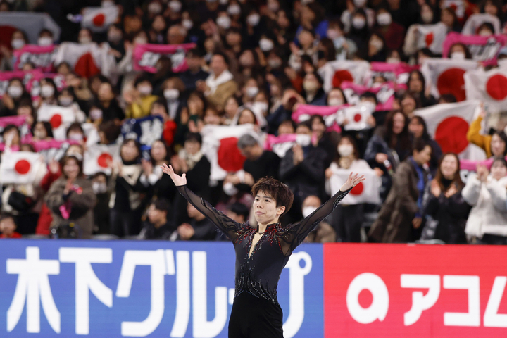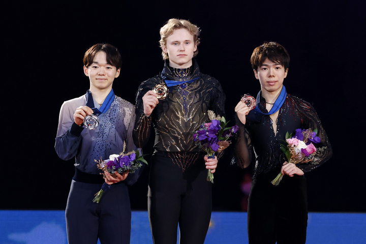 男子はSP首位の鍵山優真(かぎやま・ゆうま)(オリエンタルバイオ・中京大)がフリー4位の合計302・41点で2年連続の2位。佐藤駿(さとう・しゅん)(エームサービス・明大)が292・08点でSPから一つ下げ、昨年に続いて3位だった。SP3位のイリア・マリニン(米国)が史上初めて4回転以上のジャンプを全6種類、計7度成功させてフリーの世界歴代最高得点を更新し、合計332・29点で3連覇した。