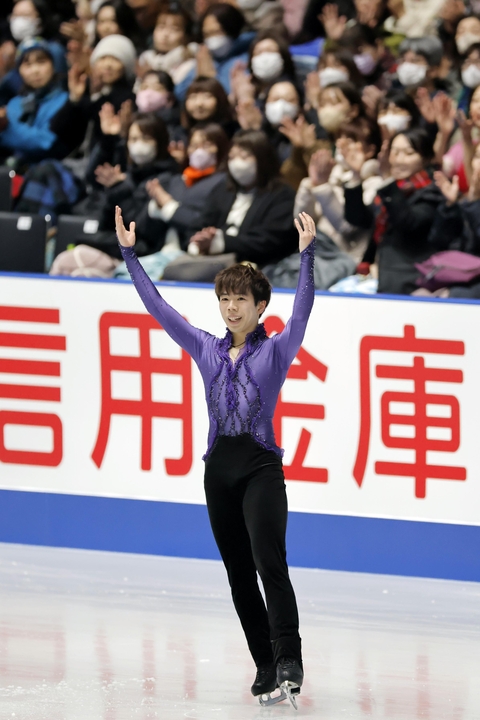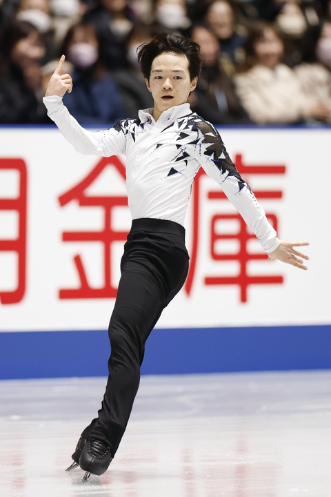 フィギュアスケートのミラノ・コルティナ冬季五輪代表最終選考会を兼ねる全日本選手権は19日、東京・国立代々木競技場で開幕し、男子ショートプログラム(SP)は2連覇が懸かる鍵山優真(かぎやま・ゆうま)(オリエンタルバイオ・中京大)が104・27点で首位に立った。初代表を狙う三浦佳生(みうら・かお)(オリエンタルバイオ・明大)が95・65点で2位。