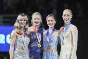 【セントルイス共同】フィギュアスケートのミラノ・コルティナ冬季五輪代表選考会を兼ねる全米選手権は9日、セントルイスで行われ、女子はアンバー・グレンがショートプログラム(SP)、フリーともに1位の合計233・55点で3年連続3度目の優勝を果たした。世界女王のアリサ・リュウは合計228・91点で2位。イザボー・レビトが3位に入った。