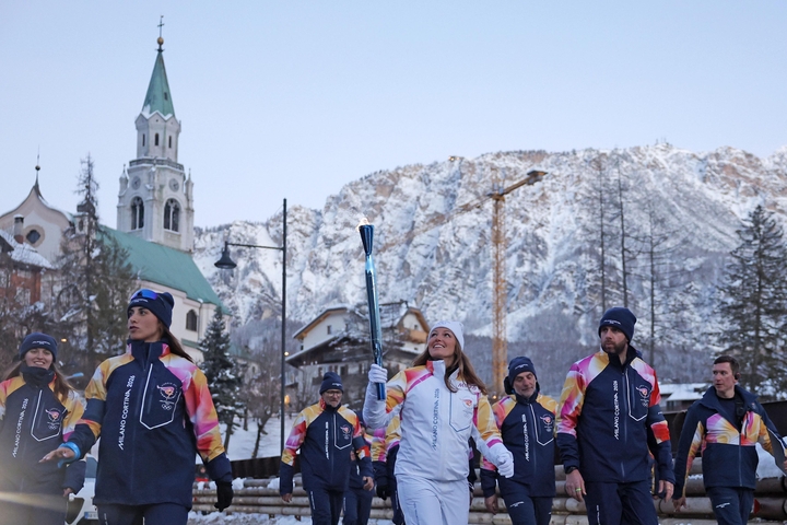 【コルティナダンペッツォ(イタリア)共同】ミラノ・コルティナ冬季五輪の聖火リレーが26日、アルペンスキー女子やそり競技などの会場があるイタリア北東部の山間部、コルティナダンペッツォで行われた。1956年冬季大会以来70年ぶりに開催する地に聖火が到着し、この日の最終地点となった広場には多くの人が集まって祝祭ムードを盛り上げた。