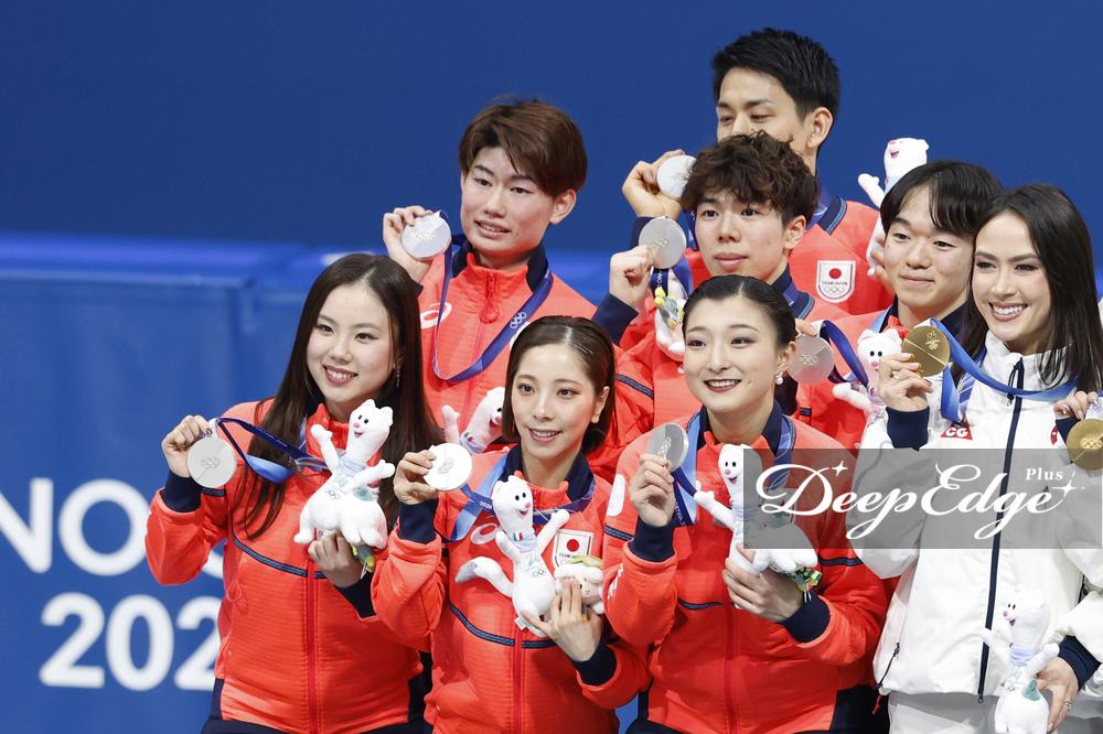 しびれる金メダル争いに、ほぼ満員の会場は沸きに沸いた。フィギュアスケート団体の最終種目。前回覇者のアメリカと順位点で並んだ日本は、男子の佐藤が最終滑走の重圧をはねのけて自己ベストの好演技で締めくくった。世界王者イリア・マリニンに及ばなかったが、7人全員が笑顔で表彰台へ。メダルの色は前回と同じでも、坂本は「4年前よりさらにみんなが成長できた」と歓喜の涙を流した。