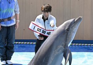 佐藤駿、仙台の水族館で一日館長 イルカと共演を披露