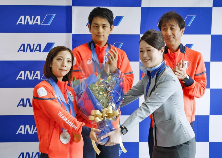 ミラノ・コルティナ冬季五輪で史上最多24個のメダルを獲得した日本選手団の本隊が24日、成田空港着の航空機で帰国した。到着ロビーで大勢の人に出迎えられ、フィギュアスケートペアで日本勢初の金メダルに輝いた三浦璃来(みうら・りく)、木原龍一(きはら・りゅういち)組(木下グループ)は花束を受け取り「金メダルを持ち帰ることができてうれしいです」(三浦)「2人で戦い抜くことができました。本当にありがとうございました」(木原)とあいさつした。