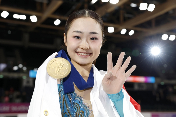 【タリン共同】フィギュアスケート女子で愛知・中京大中京高2年の島田麻央(しまだ・まお)(17)=木下グループ=が7日、エストニアの首都タリンでの世界ジュニア選手権で全種目通じて史上初の4連覇を達成した。首位に立った5日のショートプログラム(SP)後に発熱。一時は棄権も考えたフリーで大技トリプルアクセル(3回転半ジャンプ)を決めて逃げ切った。