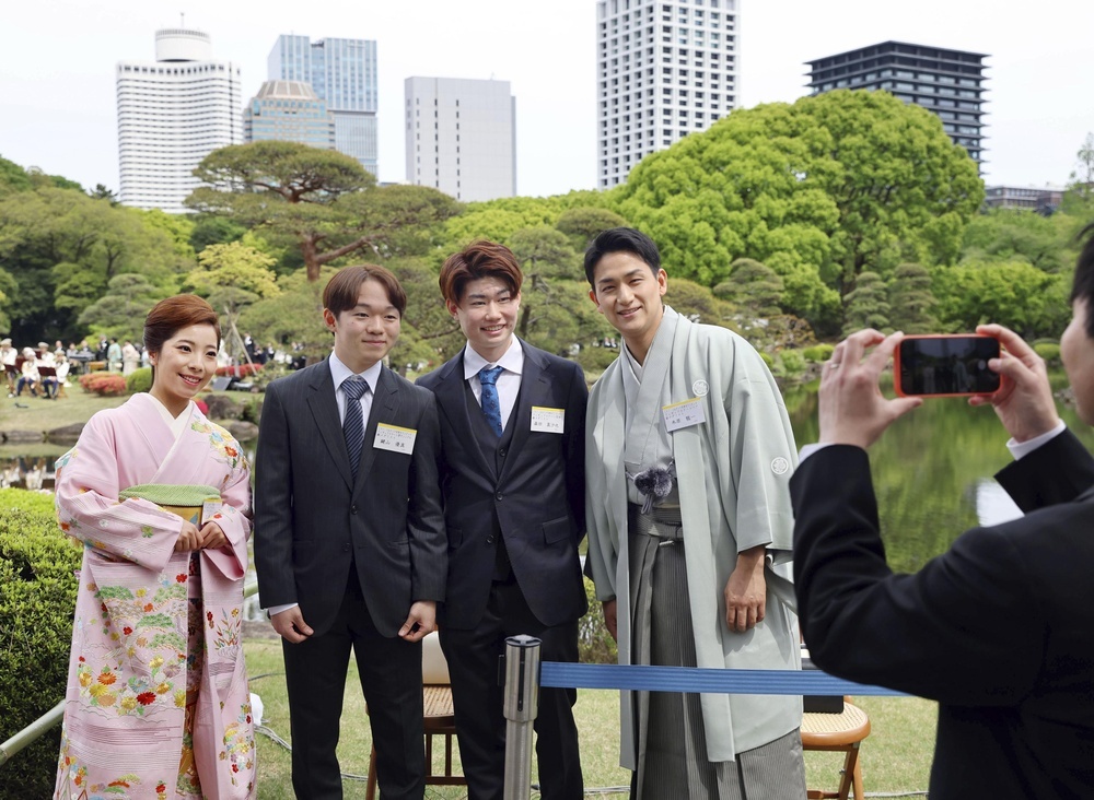 天皇、皇后両陛下主催の春の園遊会が17日、東京・元赤坂の赤坂御苑で開かれ、ミラノ・コルティナ冬季五輪の金メダリストら各界の功労者、自治体関係者ら約1400人が出席した。両陛下や長女愛子さま、秋篠宮ご夫妻らが会場を巡り、和やかに歓談された。