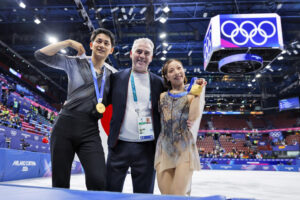 【ジュネーブ共同】ミラノ・コルティナ冬季オリンピックのフィギュアスケート・ペアで日本勢初の金メダルを獲得し、現役引退を発表した三浦璃来、木原龍一組(木下グループ)が長年師事したコーチのブルーノ・マルコット氏が17日、共同通信のオンライン取材に応じた。愛称「りくりゅう」の2人を指導してきたカナダのオークビルから同国のキッチナーに拠点を移したことを明らかにした。