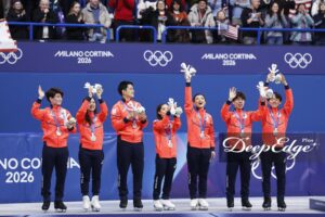 2連続銀、涙でたたえ合う リンクに声援、日の丸も